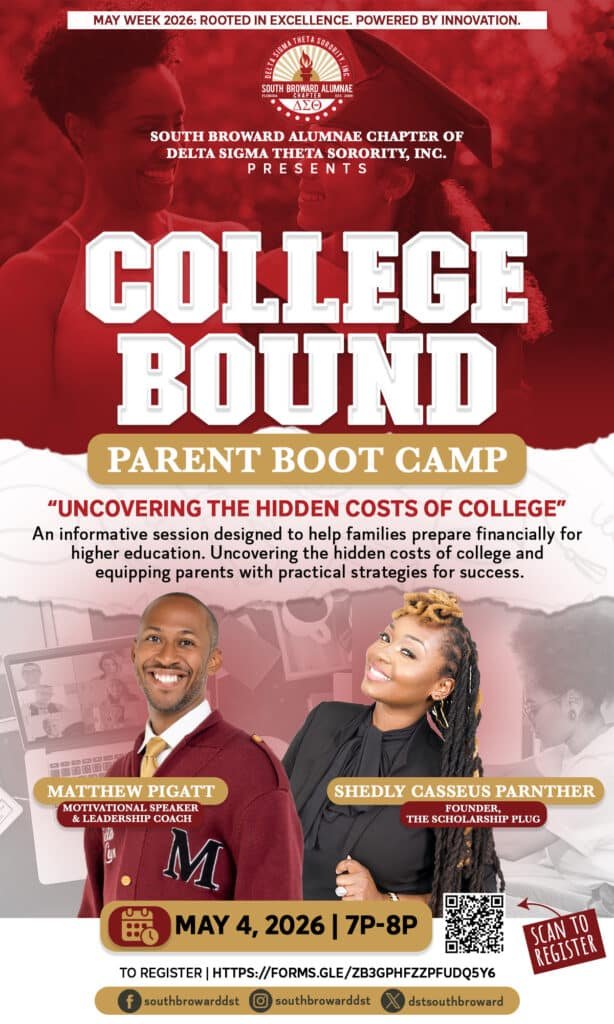 Join the South Broward Alumnae Chapter of Delta Sigma Theta Sorority, Inc. for an informative and empowering session designed to help families better understand the true cost of higher education.